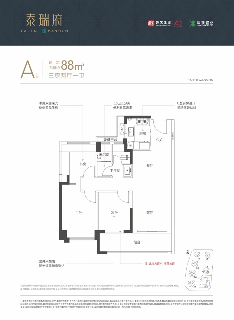 【泰瑞府】一席瑞居 启大运约88-131㎡三至四房 城芯阔景美宅项目基础信息【开发商】:深业泰然集团和深圳地铁置业集团【项目地址】:广东省深圳市龙岗区龙飞大道与如意路交汇处【总占地面积】:约2.9万㎡【总建筑面积】:约21.6万㎡【项目业态】:纯住宅【住宅户数】:884户(可售)【停车位】:1590个【梯户比】:3梯6户【产权年限】:70年泰瑞府必买理由一、龙岗:东进战略核心区和主战场深圳发展第三...